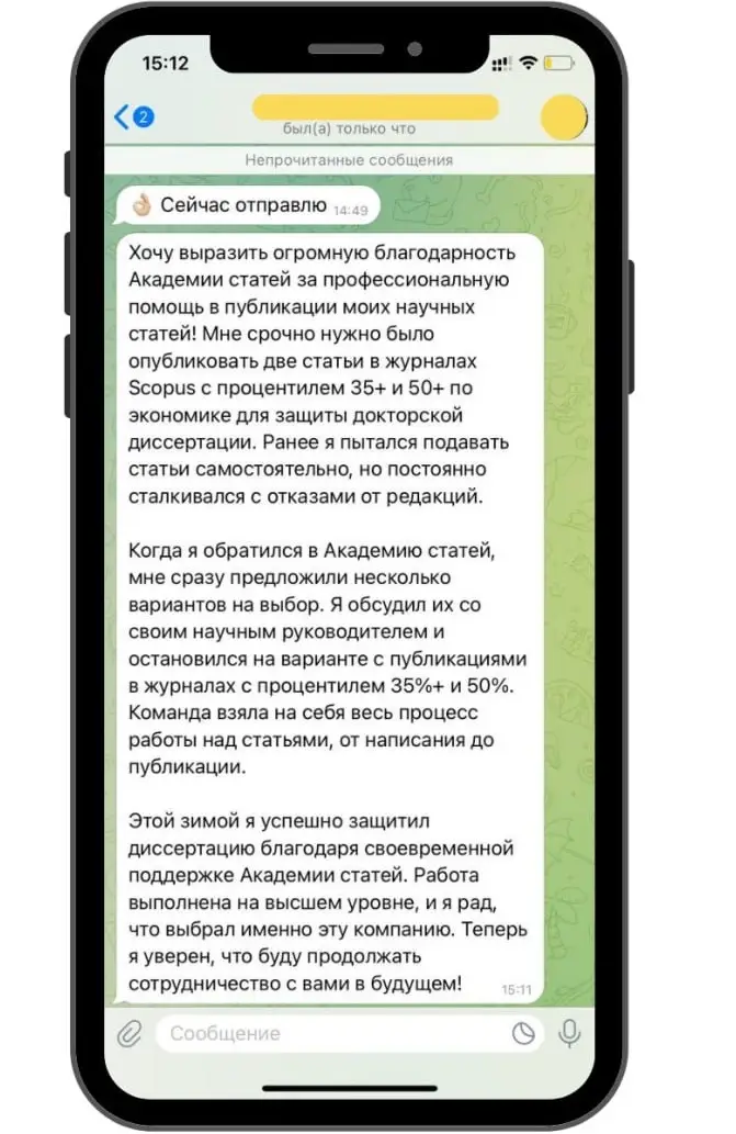 Благодаря профессиональному подходу Академии статей Алихан не только успешно защитил свою диссертацию этой зимой, но и выбрал нас как надежного партнера для дальнейшего сотрудничества!