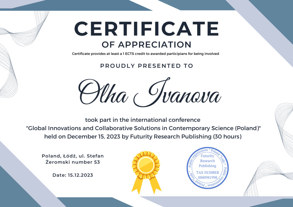 Научный сборник будет издан европейским издательством Futurity Research Publishing (Польша) с присвоением номера ISBN, что позволит авторам принять участие в научной работе, опубликованной в стране Европейского Союза. Электронная версия сборника конференции будет размещена на сайте издательства: «Futurity Research Publishing«.