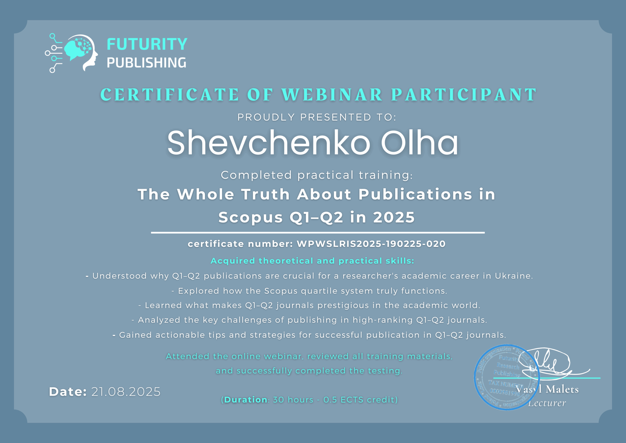 - Пройти онлайн-тестирование и получить официальный сертификат с 1 кредитом ECTS – это еще один шаг к вашему профессиональному развитию!